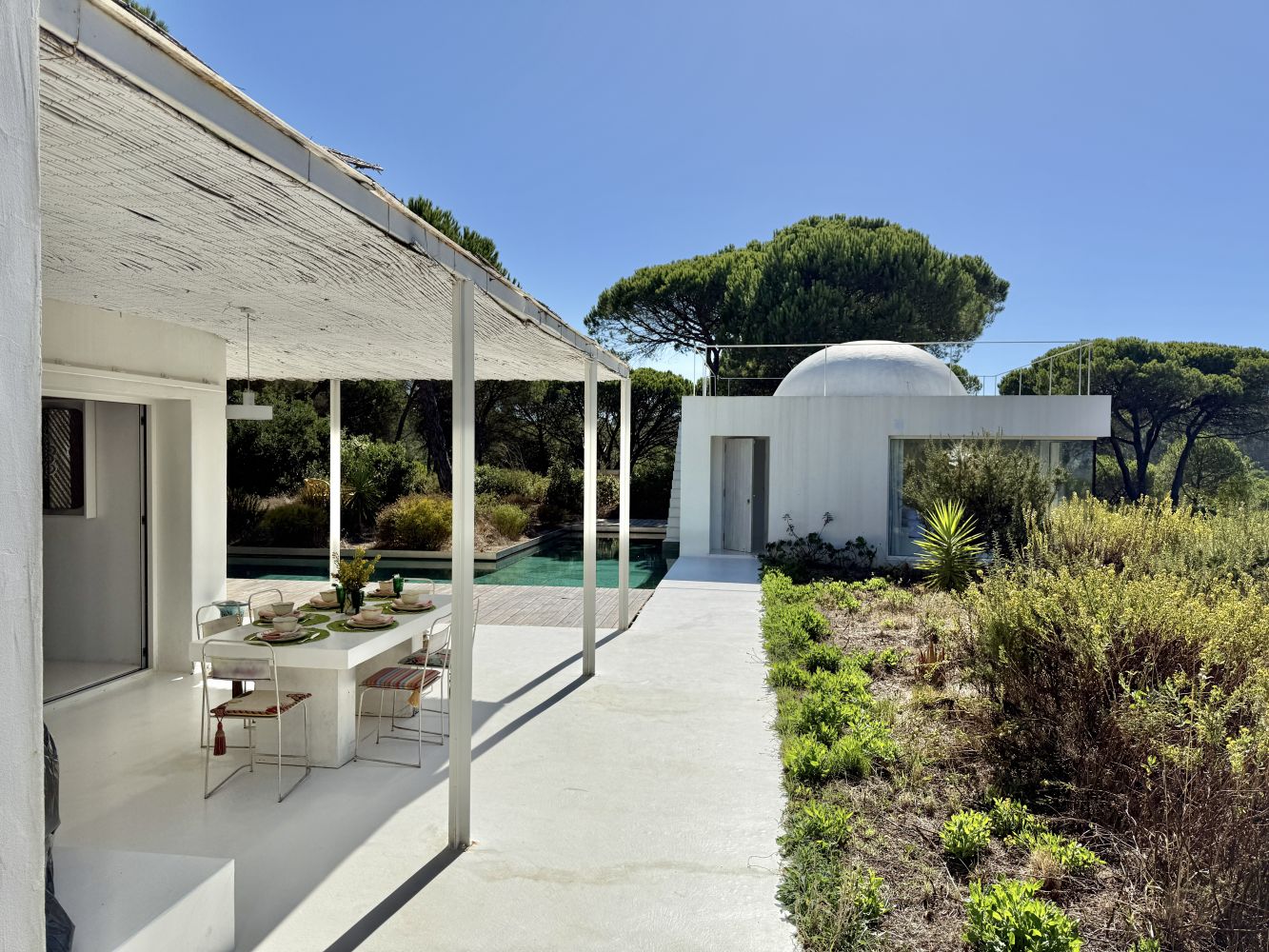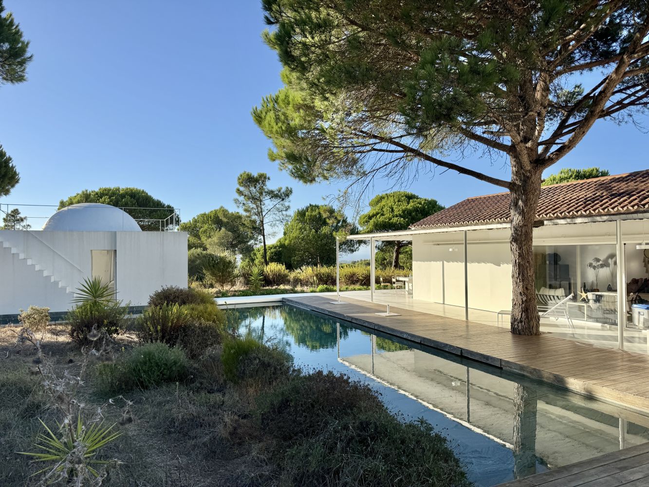 Extraordinária Moradia T3 Isolada | Design Exclusivo e Vista Mar | Próximo à Aldeia do Meco Descubra o refúgio perfeito onde o design contemporâneo se funde com a serenidade da natureza. Esta moradia exclusiva, construída em 2022, destaca-se pelos seus detalhes arquitetónicos únicos e pela privacidade total que oferece, a apenas 10 minutos da icónica Aldeia do Meco. Inserida num lote de 32800m², a propriedade foi concebida para quem procura um estilo de vida sofisticado e tranquilo, longe da agitação urbana, contando ainda com uma relaxante vista parcial de mar. A moradia distribui-se de forma funcional e original por dois edifícios: Edifício Principal: Luz e Convivência Social: Salão amplo em open space com a cozinha, ambos orientados para a piscina, criando uma simbiose perfeita entre interior e exterior. Cozinha: Totalmente equipada, com ilha central e vista privilegiada para o jardim. Arrumação: Corredor de serviço estrategicamente planeado com despenseiro e generosa área de arrumação. Quartos: Um quarto de grandes dimensões com duas amplas janelas e uma suite independente, ambos com excelente luminosidade. Casas de Banho: WC completo com base de duche e luz natural. 3hectares 32800 Pátio Interior: Um detalhe arquitetónico que promove a ventilação e entrada de luz natural em toda a casa. Edifício Secundário: A Suite "Master" de Sonho Este edifício é a joia da coroa da propriedade. Com cerca de 50 m², esta Master Suite oferece: Acesso totalmente independente. Arquitetura Singular: Teto em cúpula com acesso exterior ao topo e acesso direto do quarto para a água. Conforto: Closet privado, casa de banho completa e um duche adicional integrado no design do quarto. Vista: Dois grandes janelões que emolduram o jardim e a vista mar. Exterior: Um Oásis Particular O jardim é um convite ao lazer, com uma piscina de grandes dimensões revestida a mármore Verde de Viana (que confere um tom de água único). O alpendre coberto oferece a zona ideal para refeições ao ar livre e momentos de relaxamento à sombra. Principais Características: Ano de construção: 2022 Privacidade total e arquitetura de autor Piscina em pedra natural A 10 minutos das praias do Meco e de Sesimbra Venha conhecer esta propriedade que não deixa ninguém indiferente. Marque já a sua visita!